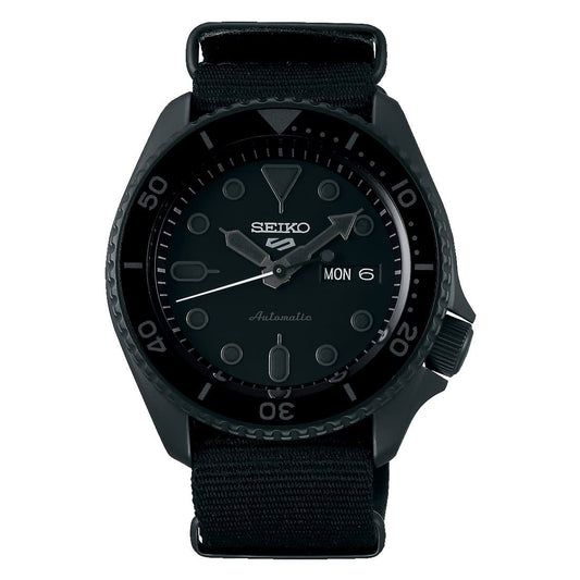 Seiko 5 Sports 100M Automatic Men's Watch Stealth All BLACK Nylon Strap SRPD79K1