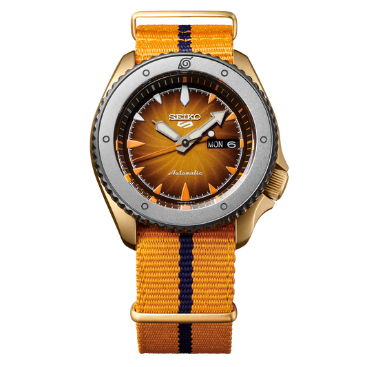 Seiko 5 Sports 100M Naruto Uzumaki LE Automatic Men's Watch Orange Dial Nylon Strap SRPF70K1