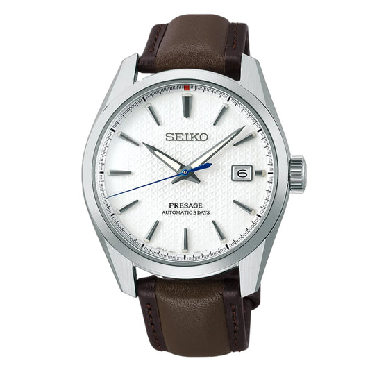 The Seiko Presage Sharp Edged Series dial incorporates a Japanese Asanoha or hemp leaf pattern, familiar in Japanese culture for its use in design since the Heian period over a thousand years ago. The Asanoha leaf was traditionally used as material for fabrics and the pattern holds a special importance in Japanese culture as it symbolizes rapid, strong growth and was thought to bring good health, especially to the young. The rich texture and intricacy of the dial’s sharply edged geometric pattern create a subtle color gradation as they play with the light at different angles. The Asanoha leaf was traditionally used as material for fabrics and the pattern holds a special importance in Japanese culture as it symbolizes rapid, strong growth and was thought to bring good health, especially to the young. The rich texture and intricacy of the dial’s sharply edged geometric pattern create a subtle color gradation as they play with the light at different angles.