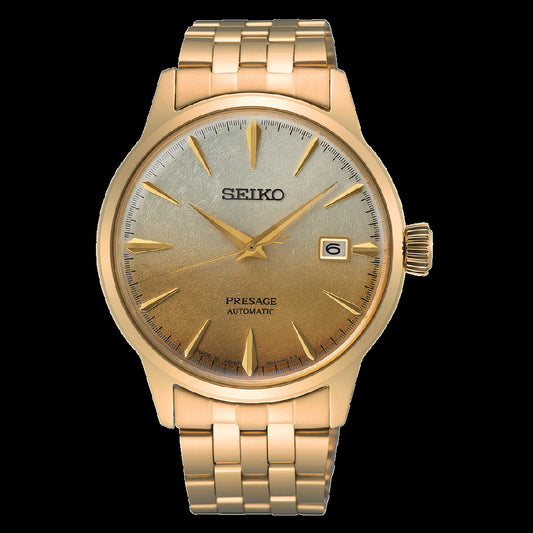 Seiko Special Edition Presage Cocktail Time Beer Julep Men's Gold Ion Plated Stainless Steel Watch SRPK46J1