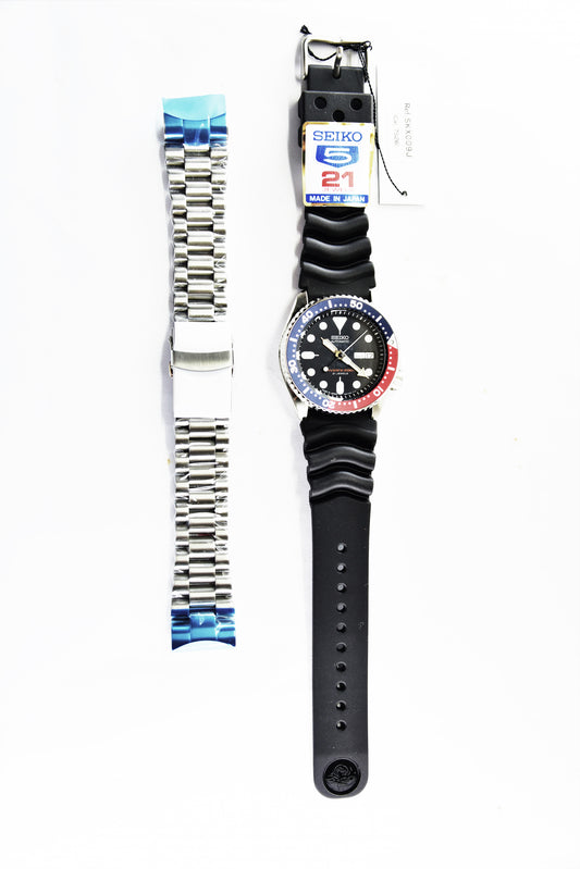 Seiko Pepsi SKX Diver's 200M Men's Rubber+Endmill 316L S/S Strap Watch SKX009K1 SET