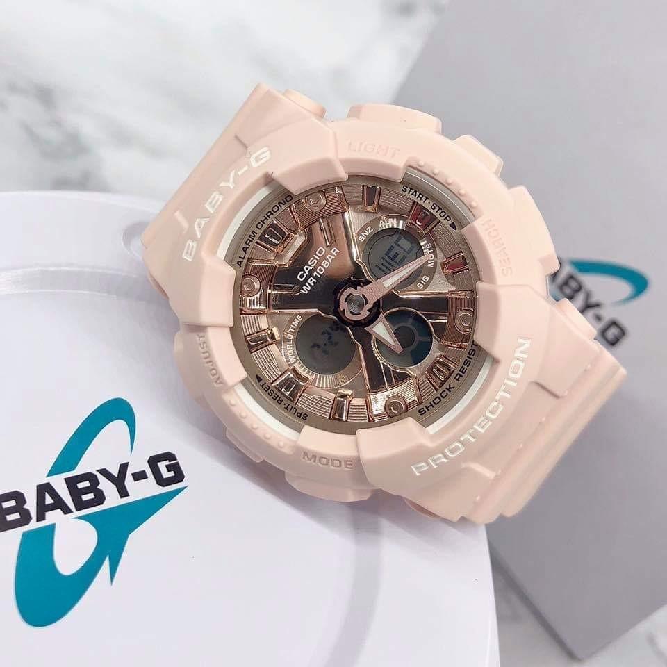 Casio Baby-G Anadigi Mettalic Pink x Rose Gold Watch BA130-4ADR The face parts are metallic colors on a pink base to add a gorgeous shine. This model refines street fashion by combining a masculine design with a matte texture.A cool model that is also fun to coordinate with outfits on the ever-popular mannish BA-130 design with oversized case. Shock-resistant construction and water resistance up to 100 meters deliver the durable practicality you demand — all wrapped in soft hues that quench your thirst for cool, casual style. |