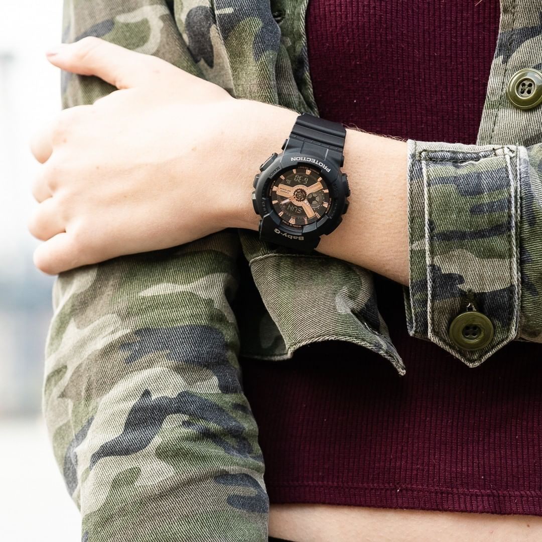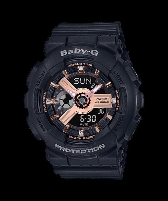 Casio Baby-G BabyG BA110 Series Analog-Digital Black x Rose Gold Watch BA110RG-1ADR