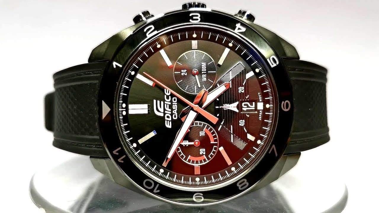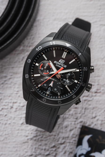 Casio Edifice Retrograde Chronograph All Black Men's PVD Rubber Strap Watch EFV-590PB-1AV