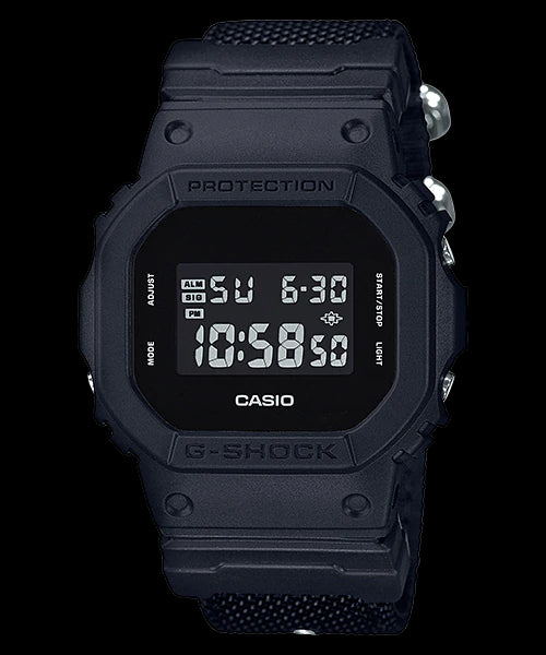 Casio G-Shock Standard Digital ALL Black LCD Nylon Fabric Band Watch DW5600BBN-1DR