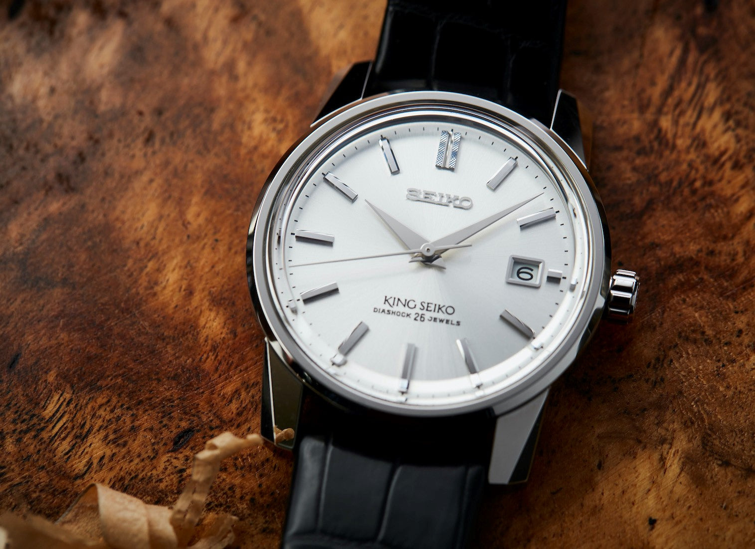 The 2021 King Seiko KSK has been updated from its original with uniquely-shaped flat lugs, deeper glass but still with the same signature shield design on the case back. A slightly bigger size than its first appearance, it is now 38.1mm where it was 36.5mm and features sapphire crystal glass. The 6L35 movement is automatic in the 2021 version, with a calendar to move with the times.
