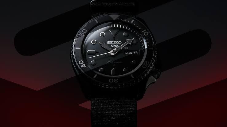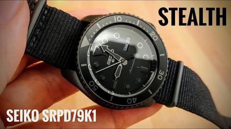 NEW Seiko 5 Sports 100M Automatic Men's Watch Stealth ALL BLACK Nylon Strap SRPD79K1