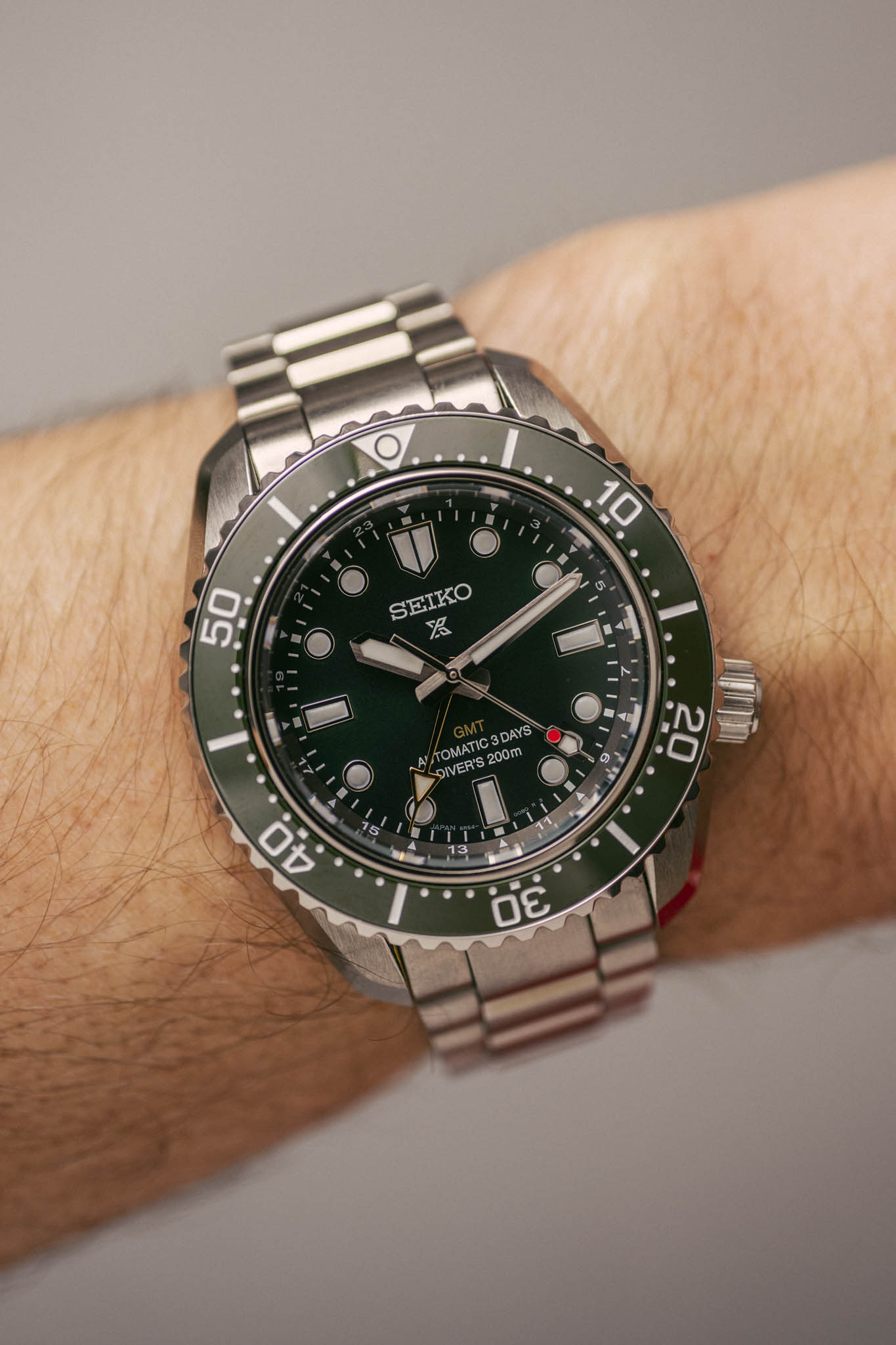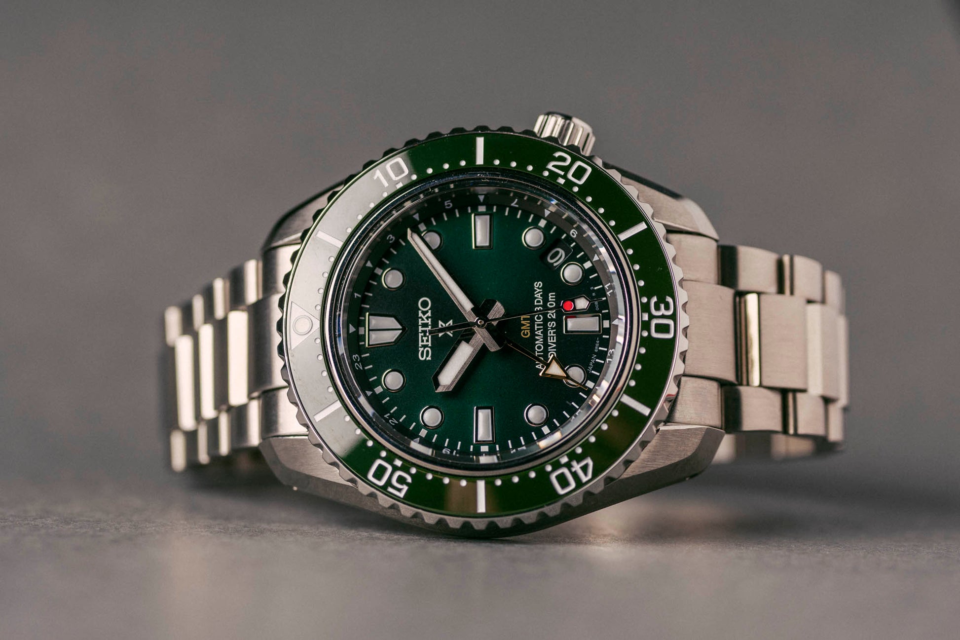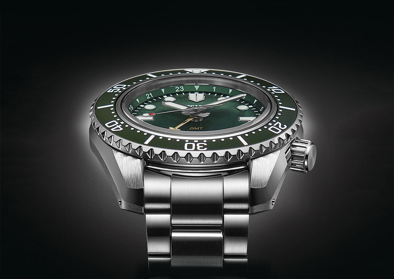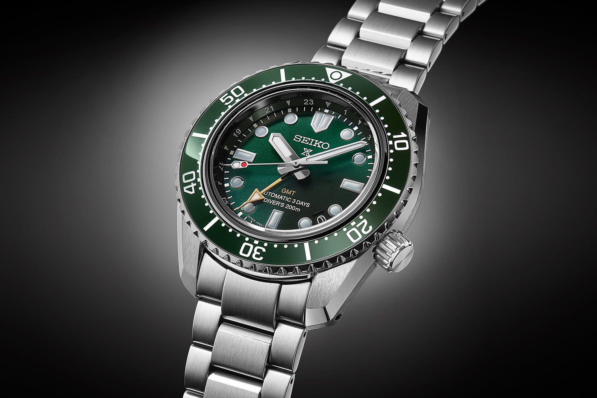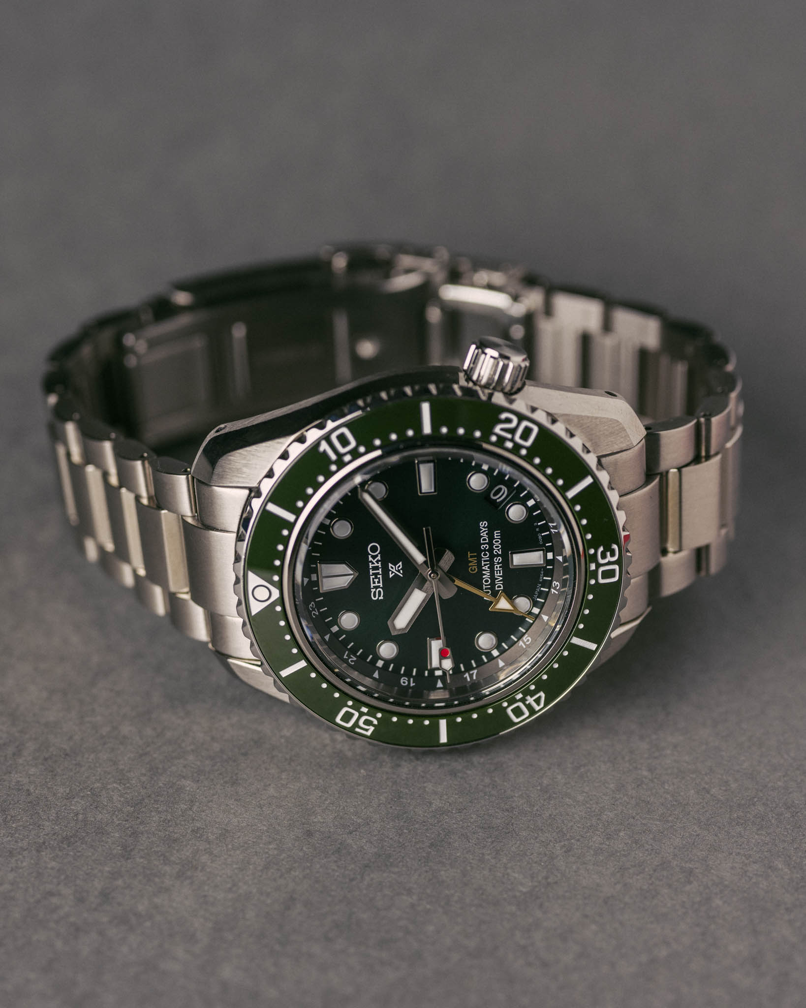This Hulk GMT is a re-interpretation of the 1968 first hi-beat one-piece Diver’s watch created by Seiko. The success of the 1968 model laid the foundation for Seiko Diver’s watch development which today is still as innovative and high quality as it was then. The watch is powered Seiko’s own Calibre 6R54 movement and is the first of Seiko’s diving watches with mechanical GMT functionality. The bracelet fits comfortably due to its low centre of gravity and short-pitch. With a 72 hr power reserve, high-quality scratch resistant Japanese ceramic diving bezel and water resistance up to 200m, the watch looks fantastic, both in the water as on land.