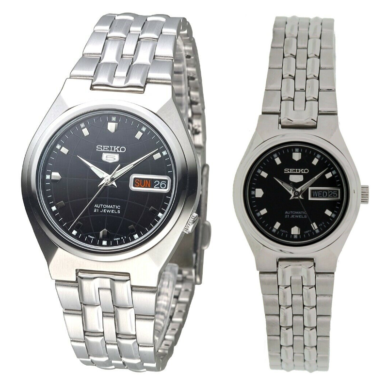 Seiko 5 Classic Black Dial Couple's Stainless Steel Watch Set SNKL71K1+SYMK43K1