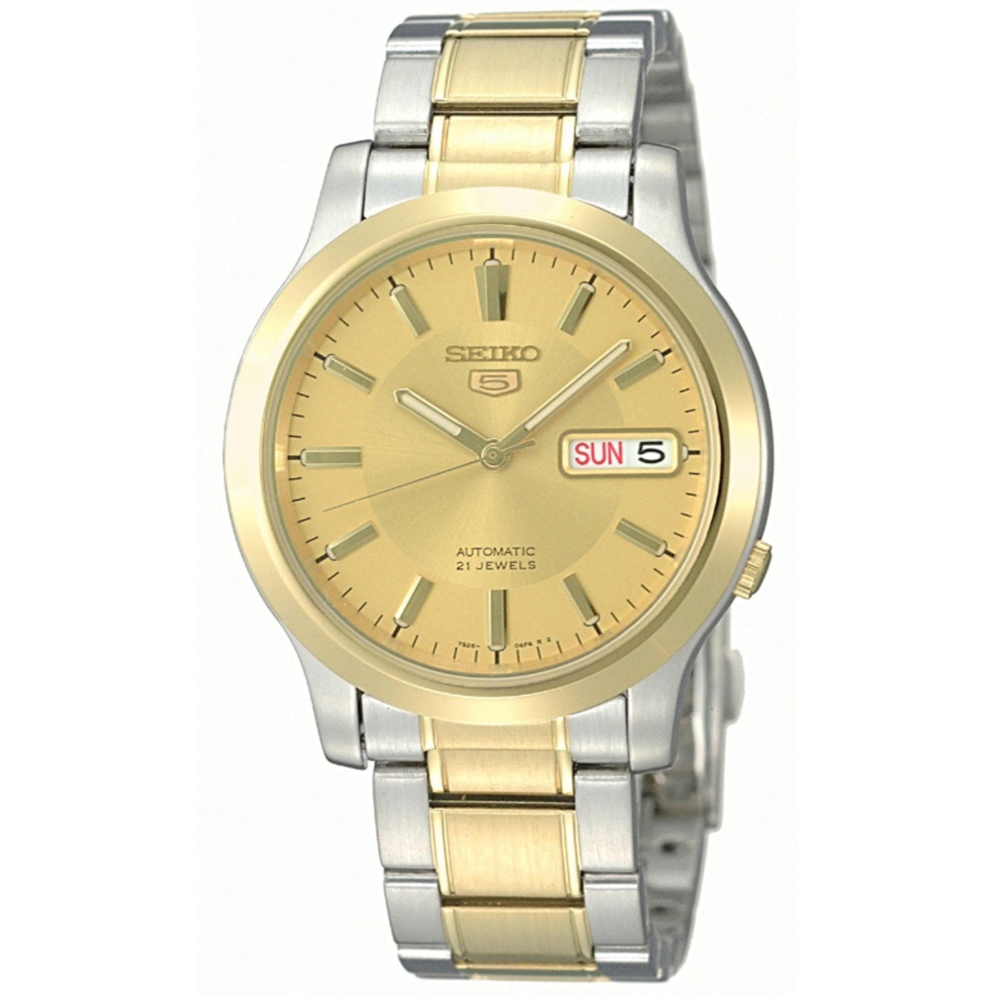 Seiko 5 Classic Men's Size Gold Dial 2 tone Gold Plated Stainless Steel Strap Watch SNK792K1