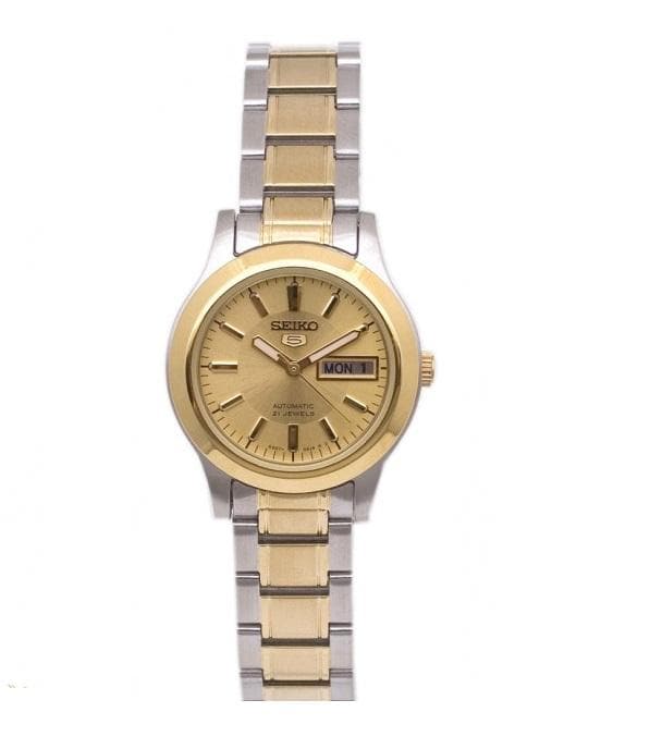 Seiko 5 Classic Ladies Size Gold Dial 2 tone Gold Plated Stainless Steel Strap Watch SYMD92K1