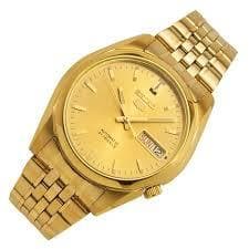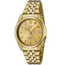 Seiko 5 Classic Men's Size Gold Dial Gold Plated Stainless Steel Strap Watch SNK366K1