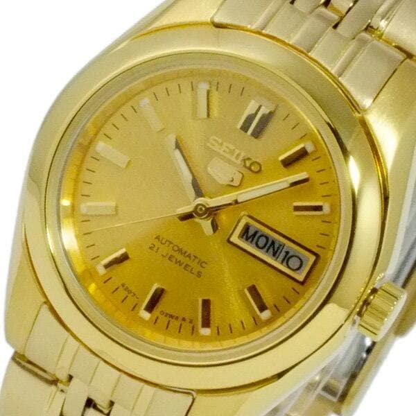 Seiko 5 Classic Ladies Size Gold Dial Gold Plated Stainless Steel Strap Watch SYMA38K1
