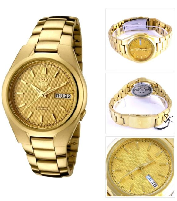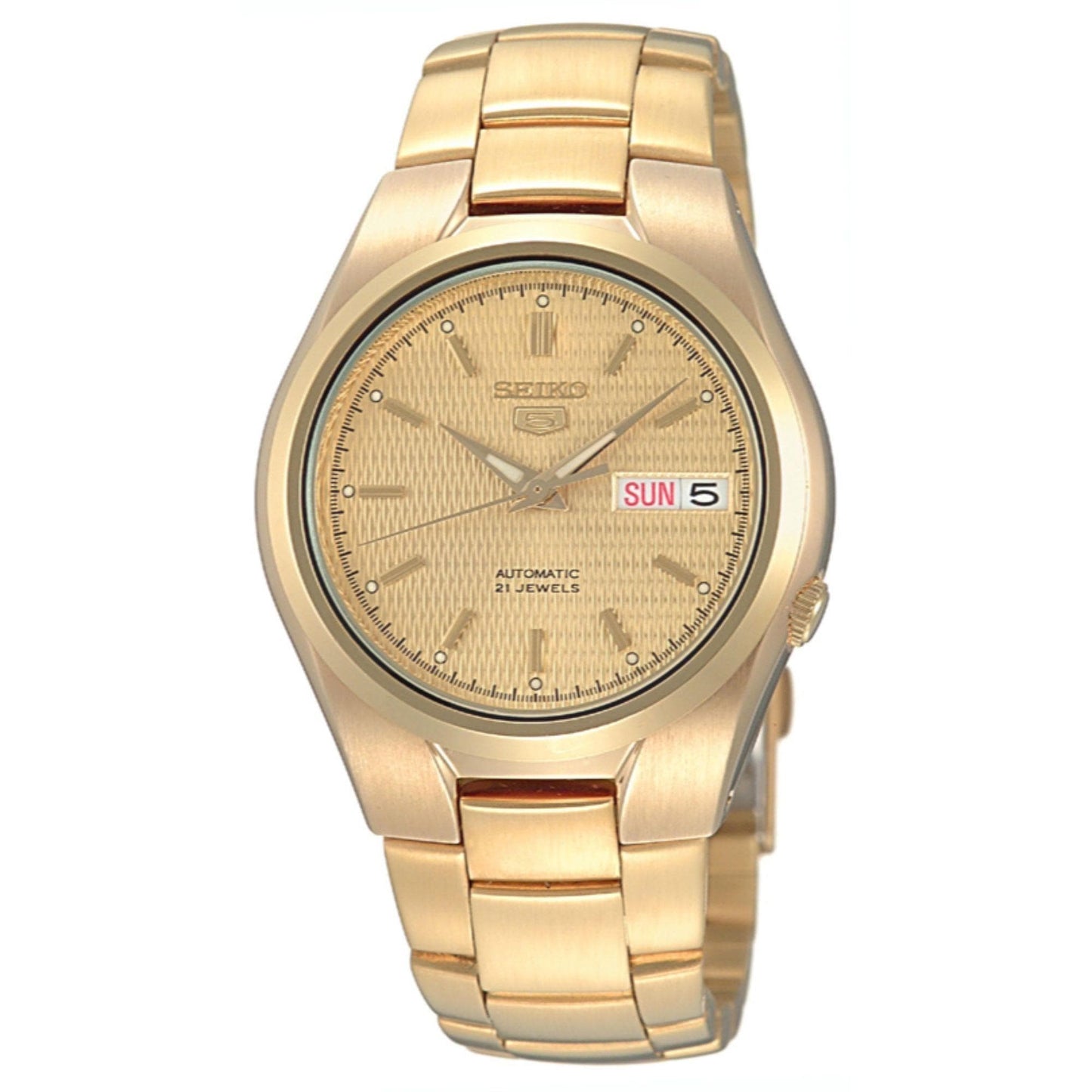 Seiko 5 Classic Men's Size Gold Dial Gold Plated Stainless Steel Strap Watch SNK610K1