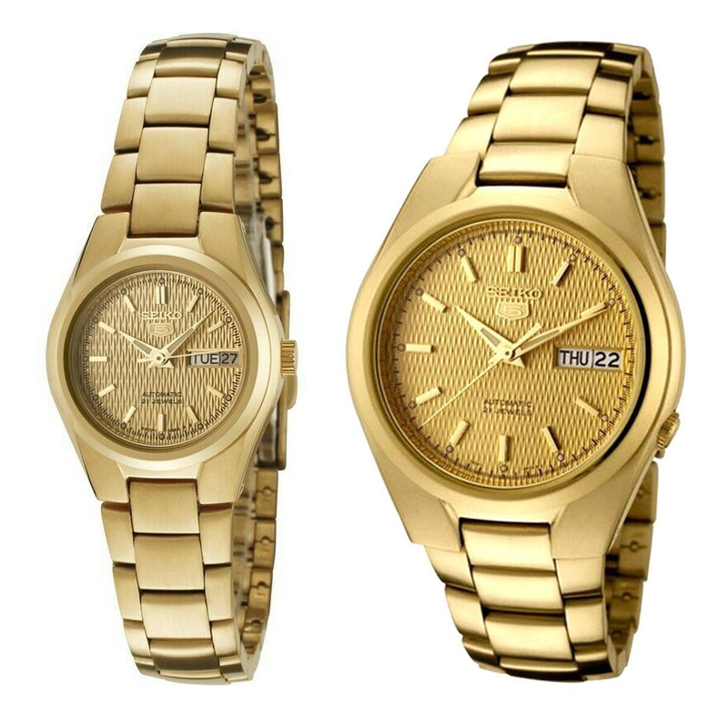 Seiko 5 Classic Gold Dial Couple's Gold Plated Stainless Steel Watch Set SNK610K1+SYMC18K1