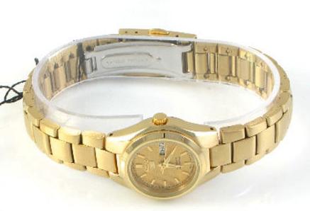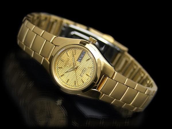Seiko 5 Classic Ladies Size Gold Dial Gold Plated Stainless Steel Strap Watch SYMC18K1
