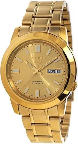 Seiko 5 Classic Men's Size Gold Dial Gold Plated Stainless Steel Strap Watch SNKK20K1