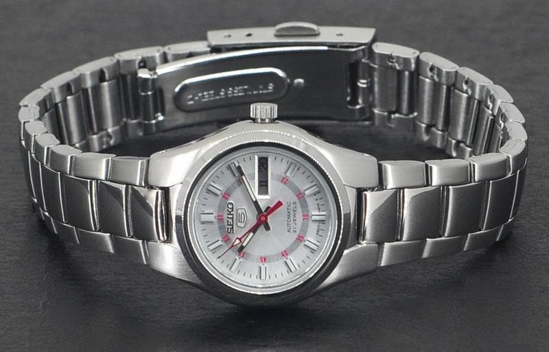 Seiko 5 Classic Ladies Size Silver Dial Stainless Steel Strap Watch SYMC21K1