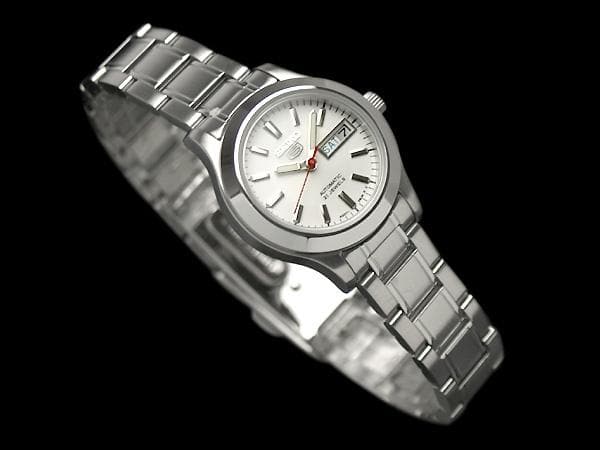 Seiko 5 Classic Ladies Size White Dial Stainless Steel Strap Watch SYMD87K1