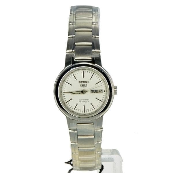 Seiko 5 Classic Ladies Size White Dial Stainless Steel Strap Watch SYME39K1