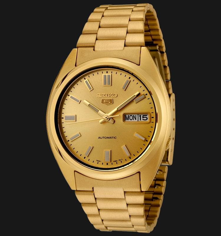 Seiko 5 Classic Men's Size Gold Dial & Plated Stainless Steel Strap Watch SNXS80K1