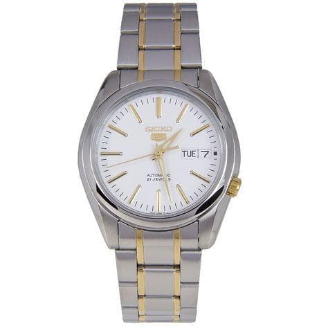 Seiko 5 Classic Men's Size White Dial 2 Tone Gold Plated Stainless Steel Strap Watch SNKL47K1