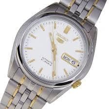 Seiko 5 Classic Men's Size White Dial 2 tone Gold Plated Stainless Steel Strap Watch SNK363K1