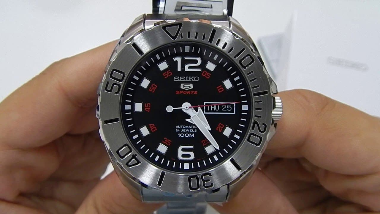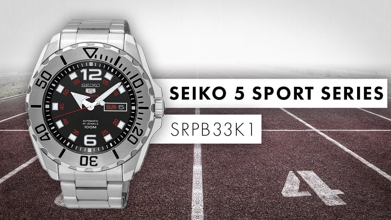 Seiko 5 Sports Black Dial Mini Baby Monster Men's Stainless Strap Watch SRPB33K1