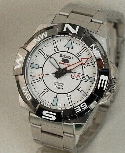 Seiko 5 Sports Japan Made 100M Compass Bezel Men's Watch White Dial SRPA63J1