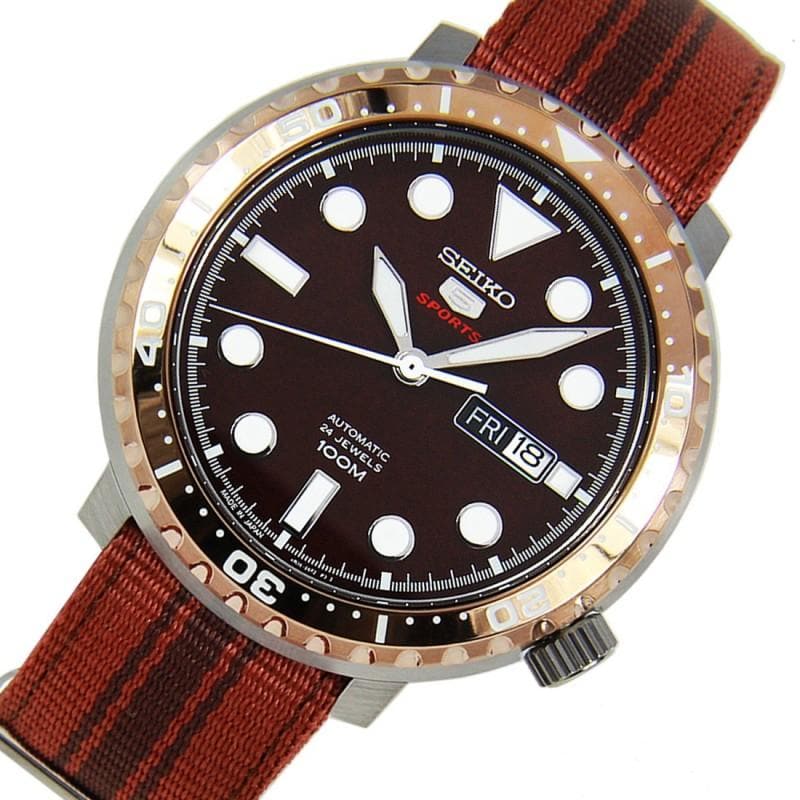 Seiko 5 Sports Japan Made Bottle Cap 100M Brown Dial Nylon Strap Watch SRPC68J1