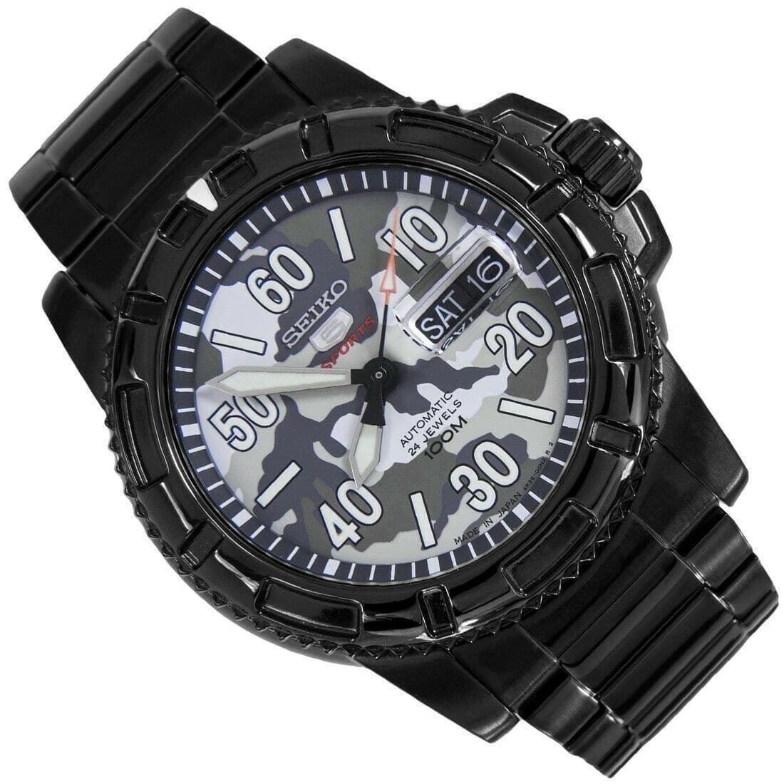 Seiko 5 Sports Japan Made Military 100M Camo Black Automatic Men's Watch SRP225J1