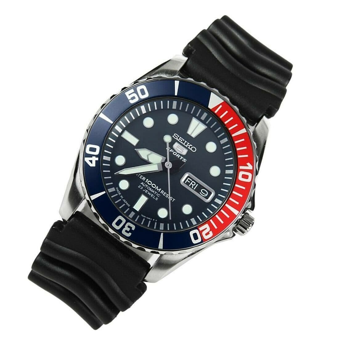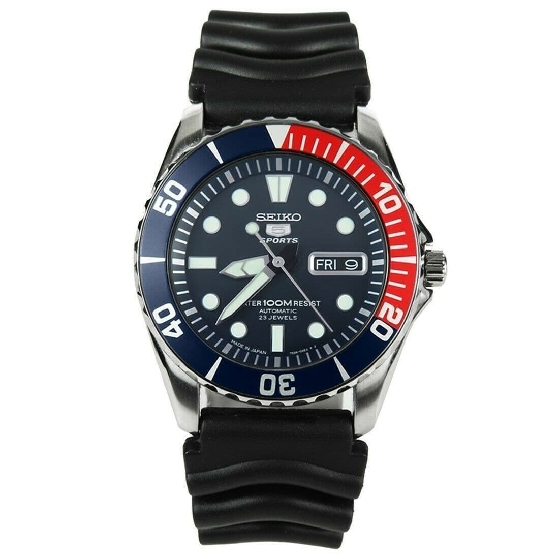 Seiko 5 Sports Japan Made Pepsi Sea Urchin Automatic Watch Rubber Strap SNZF15J2