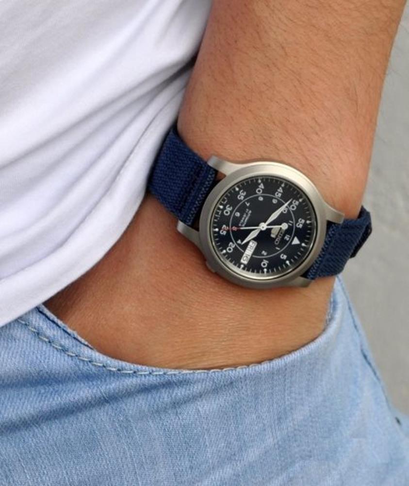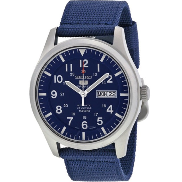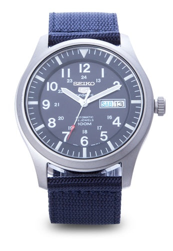 Seiko 5 Sports Military 100M Automatic Men's Watch Blue Nylon Strap SNZG11K1