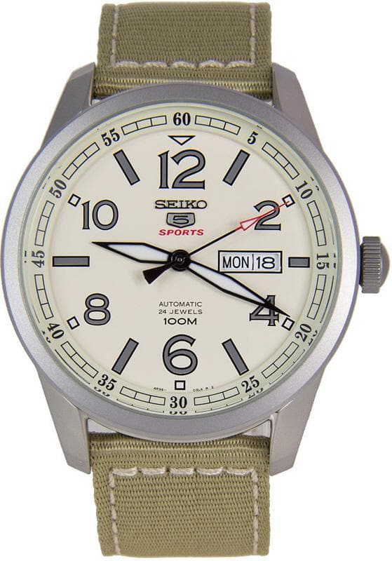 Seiko 5 Sports Military 100M Automatic Men's Watch Beige Nylon Strap SRP635K1