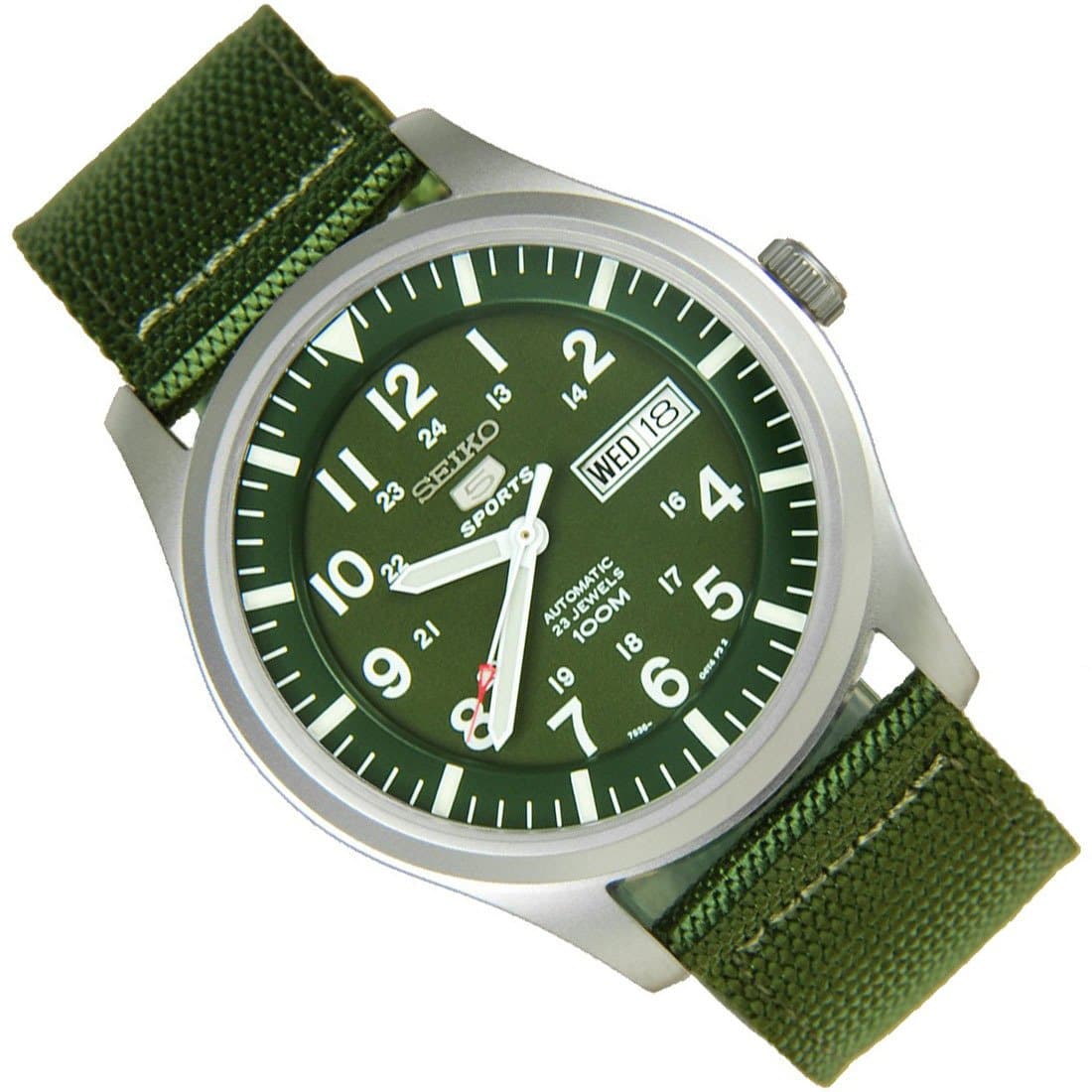 Seiko 5 Sports Military 100M Automatic Men's Watch Green Nylon Strap SNZG09K1