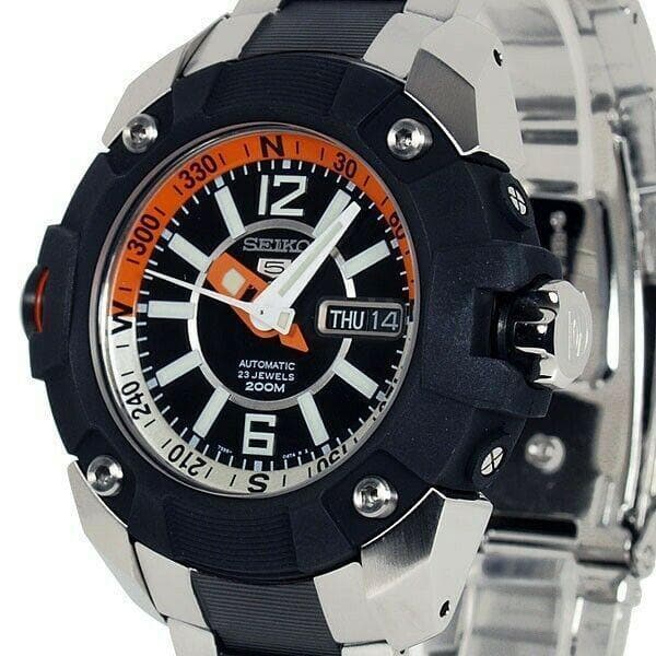 Seiko 5 Sports Pro Diver's Black Dial Orange and White Two Tone Watch SKZ265K1