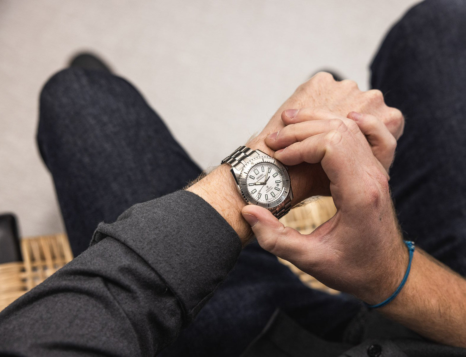 The limited-edition white 'high water' design draws inspiration from two iconic Seiko timepieces – the first Japanese Diver’s watch introduced in 1965 and the Seiko Marinemaster design from the 2000s. This special edition commemorates the 100th Anniversary of Seiko branded watches.