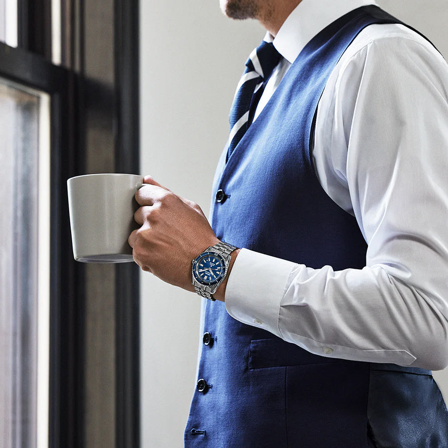 The navy blue water design draws inspiration from two iconic Seiko timepieces – the first Japanese Diver’s watch introduced in 1965 and the Seiko Marinemaster design from the 2000s.
