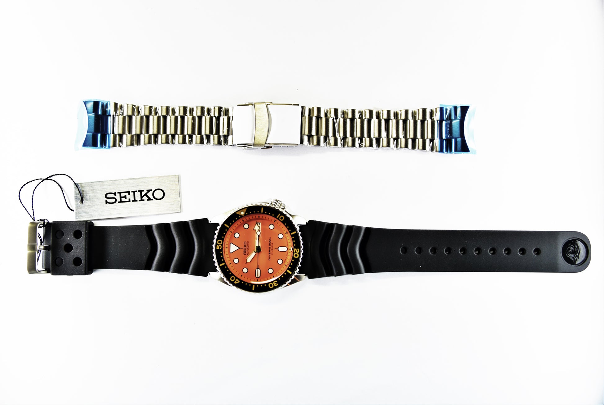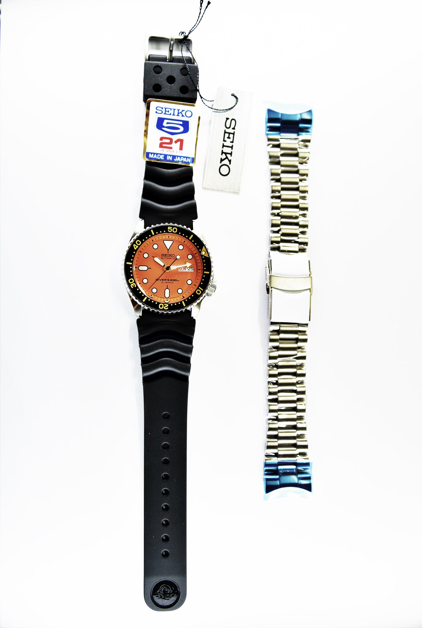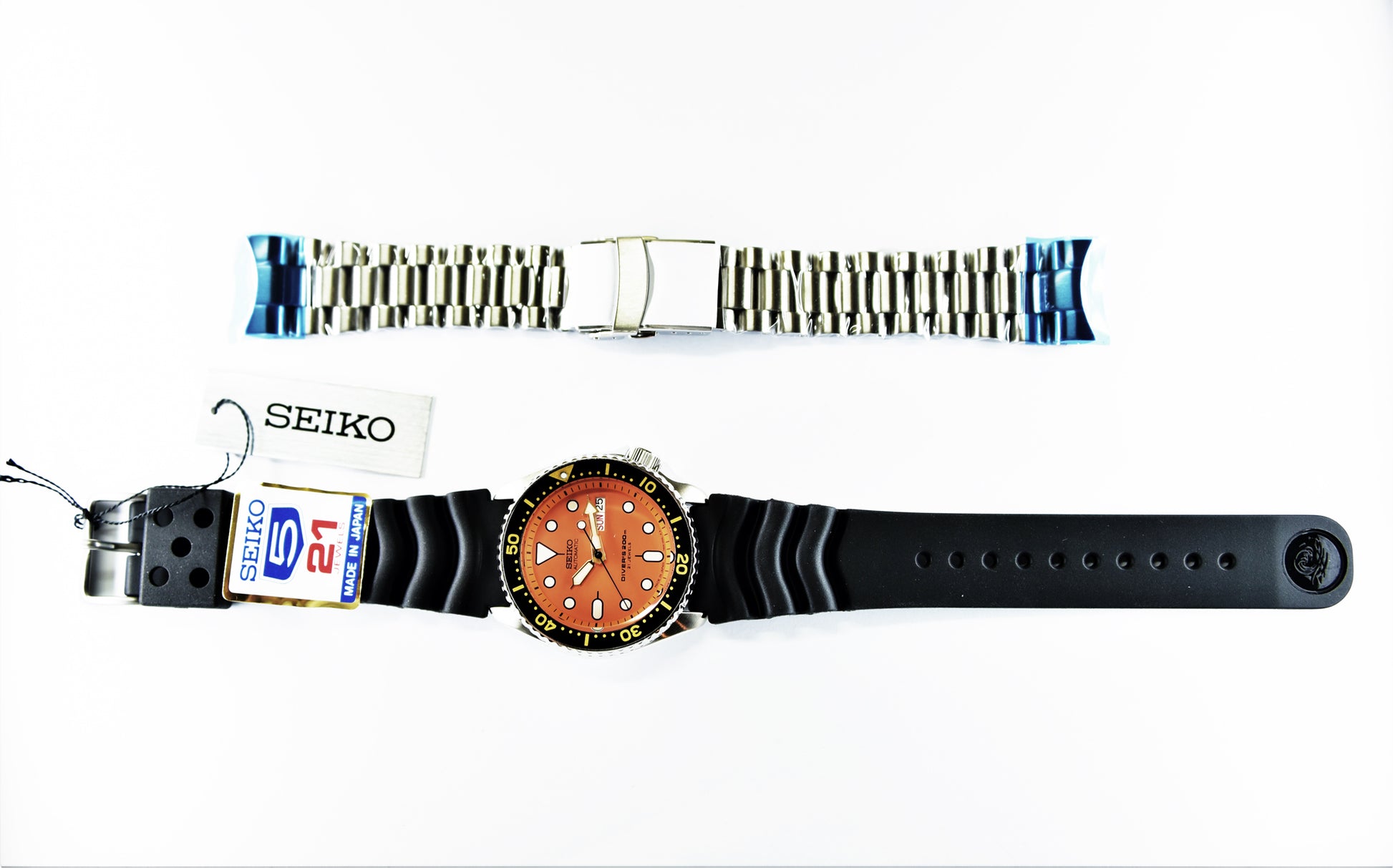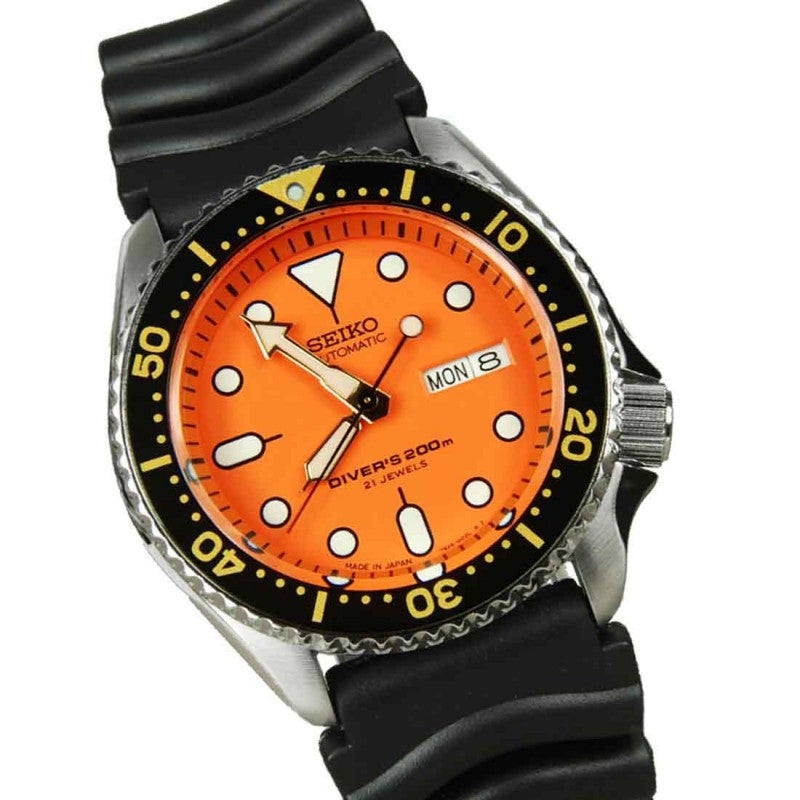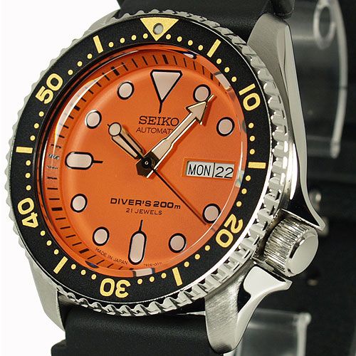 Seiko Japan Made Orange SKX 200M Diver's Men's Rubber+Endmill 316L S/S Strap Watch SKX011J1 SET
