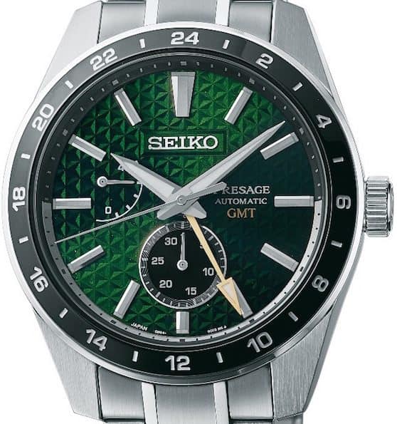 Seiko JAPAN Made Presage Sharp Edged Series Tokiwa Green GMT Men's Stainless Steel Watch SPB219J1