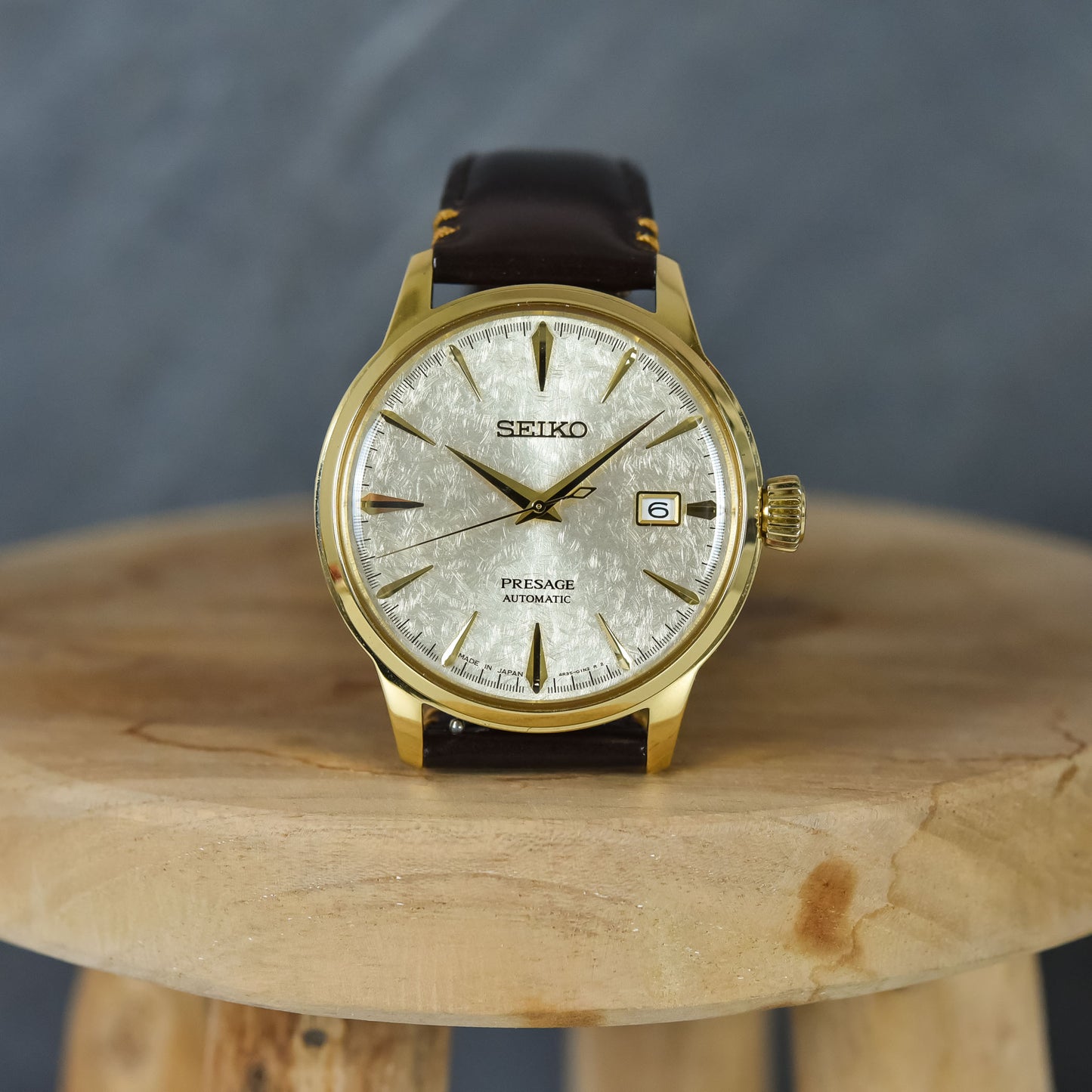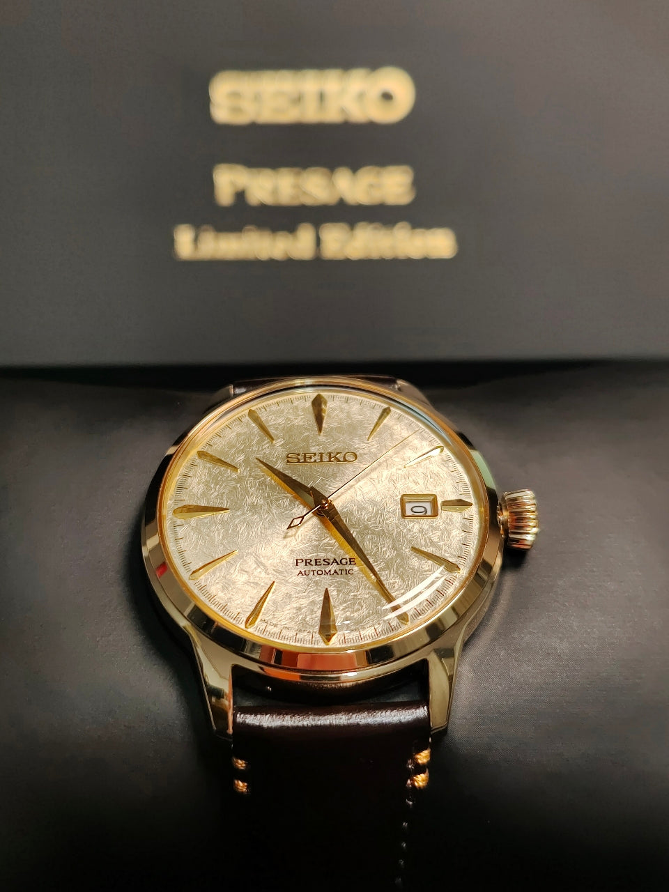 The Seiko Presage Cocktail Time collection designs are influenced by this Japanese tradition of finishing the working day off with a cocktail and a chat – with each timepiece named after drinks mixed by Hisashi Kishi, head bartender and owner of Star Bar in Tokyo’s Ginza area and a past winner of the International Bar Association World Championships.