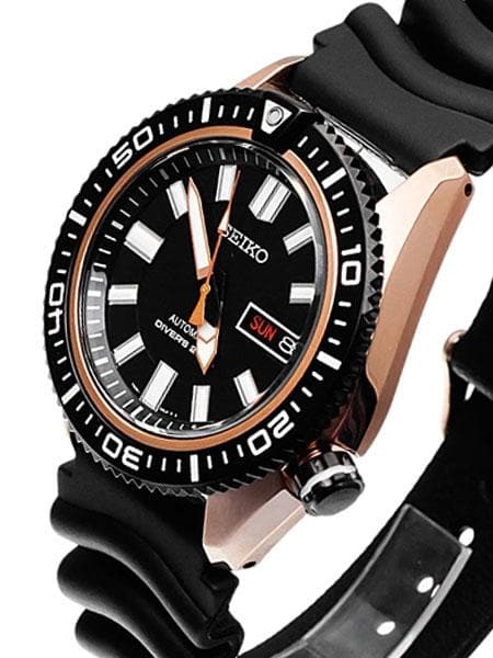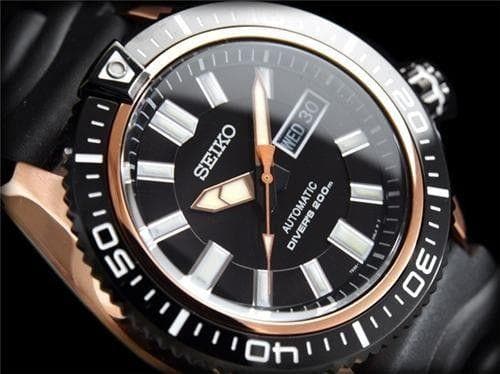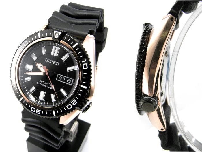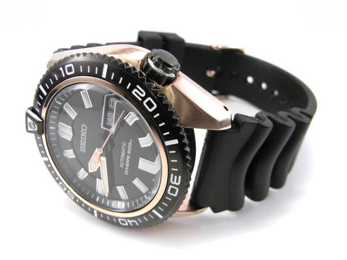 Seiko Men's Black Dial Rose Gold Plated "Stargate I" Rubber Strap Watch SKZ330K1