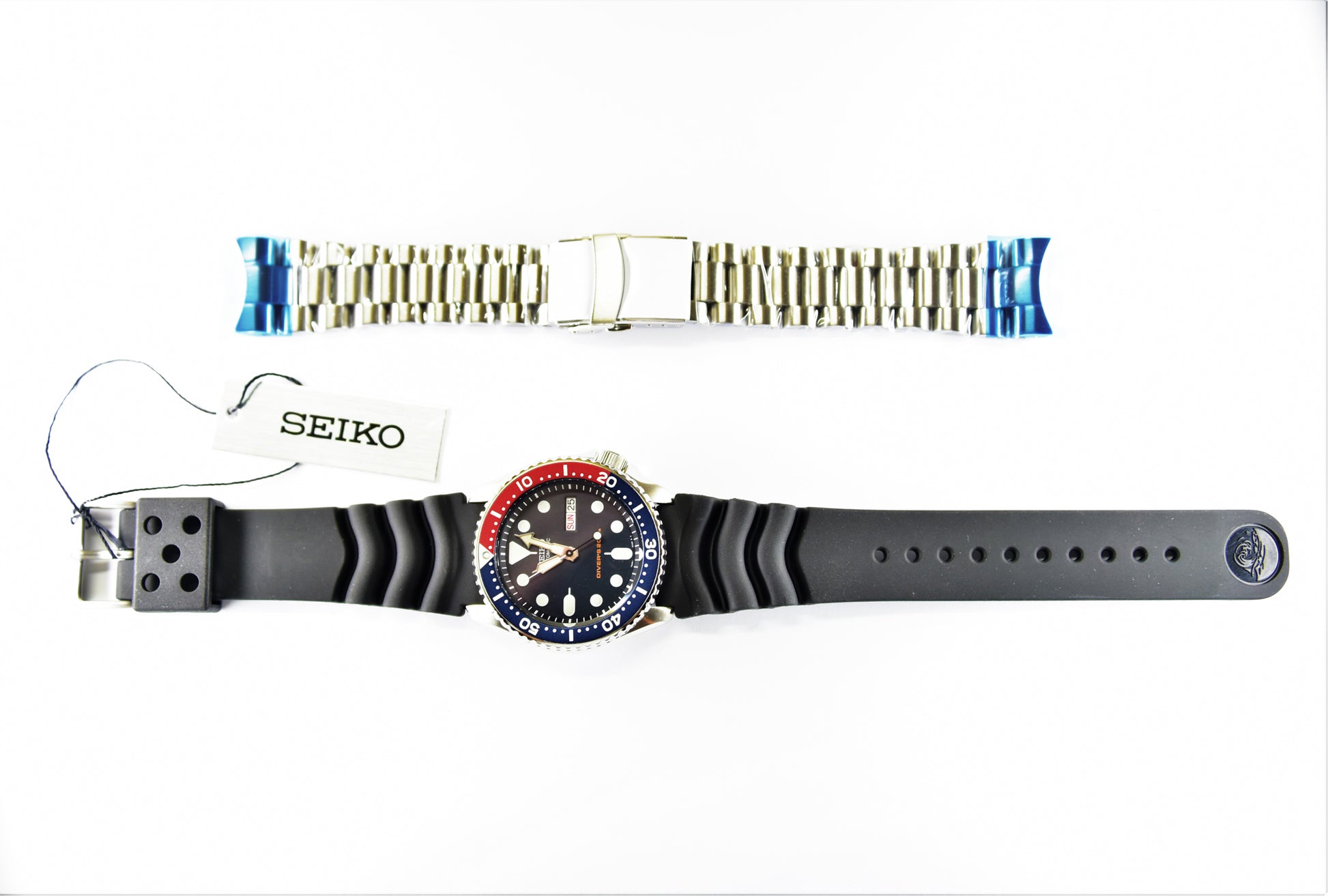 Seiko Pepsi SKX 200M Diver's Men's Rubber+Endmill 316L Stainless Steel Strap Watch SET SKX009K1