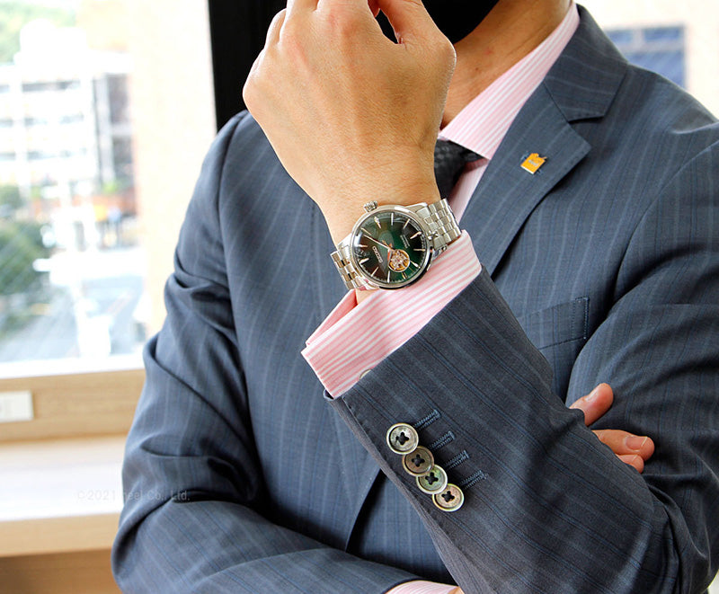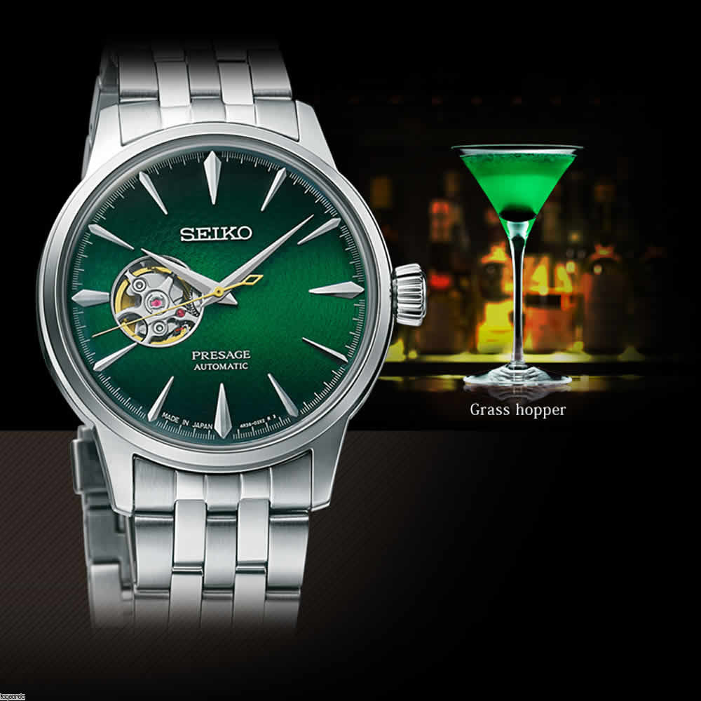 Seiko Presage Cocktail Time Green Grasshopper Open Heart Men's Watch SSA441J1