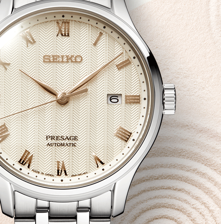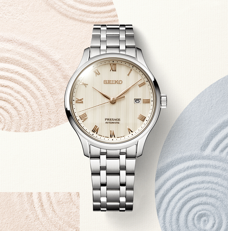 The Karesansui dial coupled with roman indexes is intricate. This particular design has been inspired by the delicate daytime view of "Sakura" - cherry blossom – the infamous floral symbol of Spring in Japan.