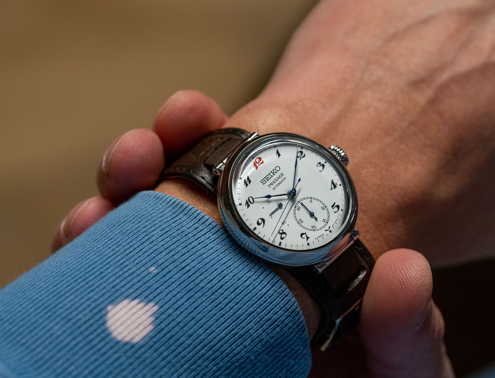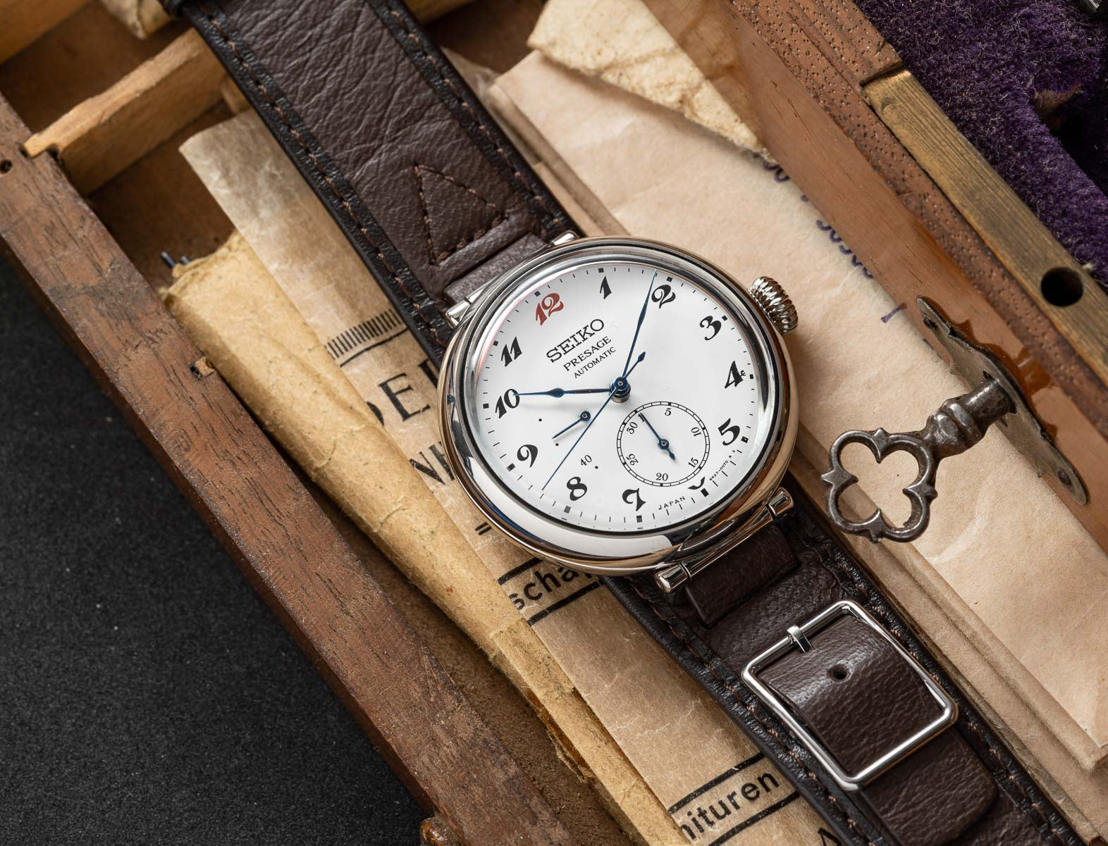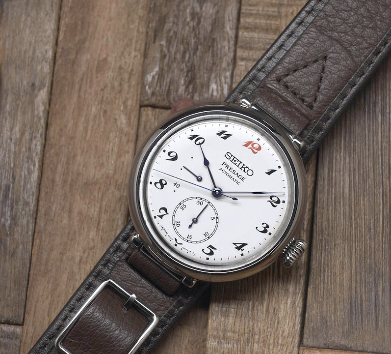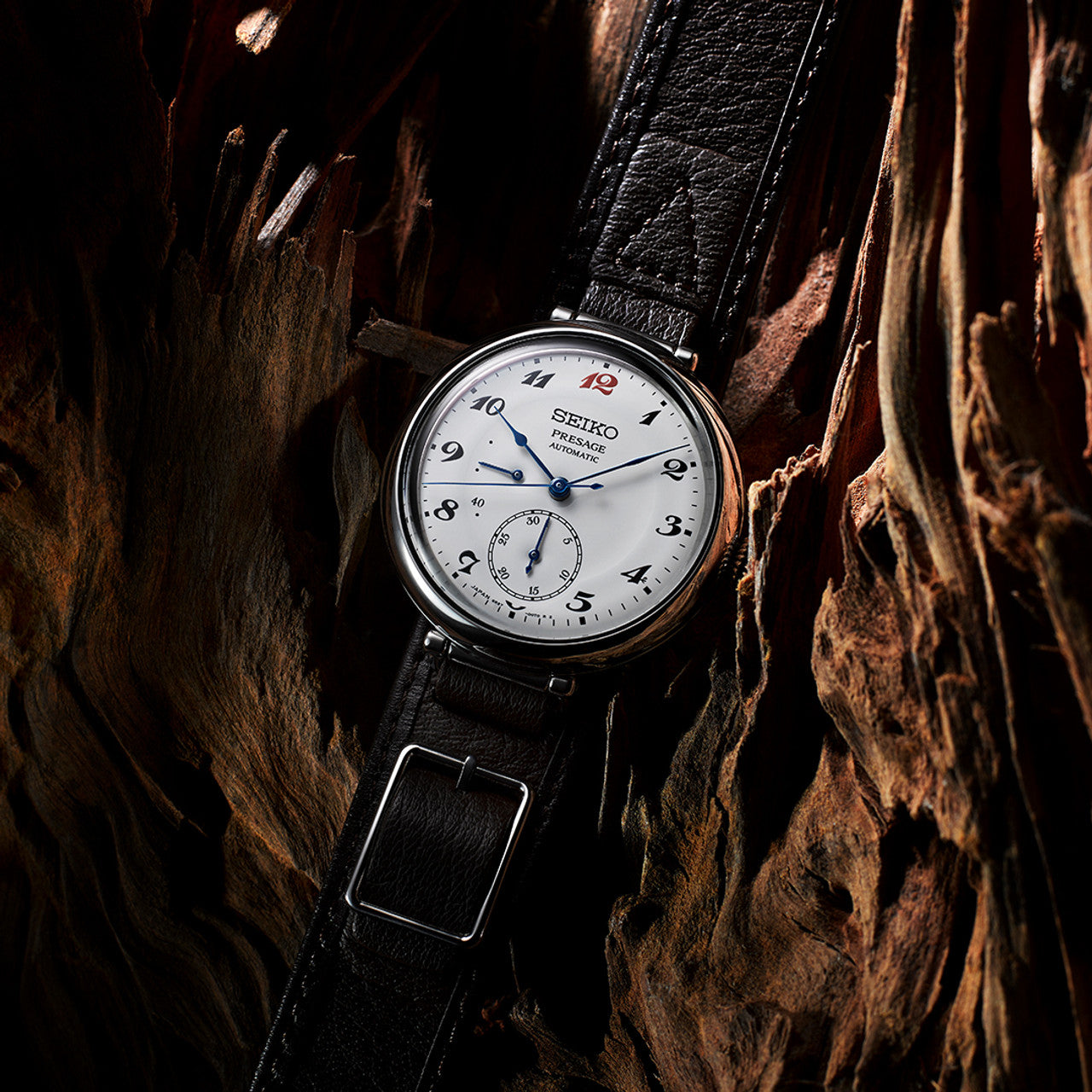 One of the Presage Takumi craft designs, this limited-edition watch is inspired by the design elements of that first wristwatch and incorporates several of the original features including the proportions, lug shape, font and colouring – noticeably with the signature red 12 o’clock, just like its inspiration.
