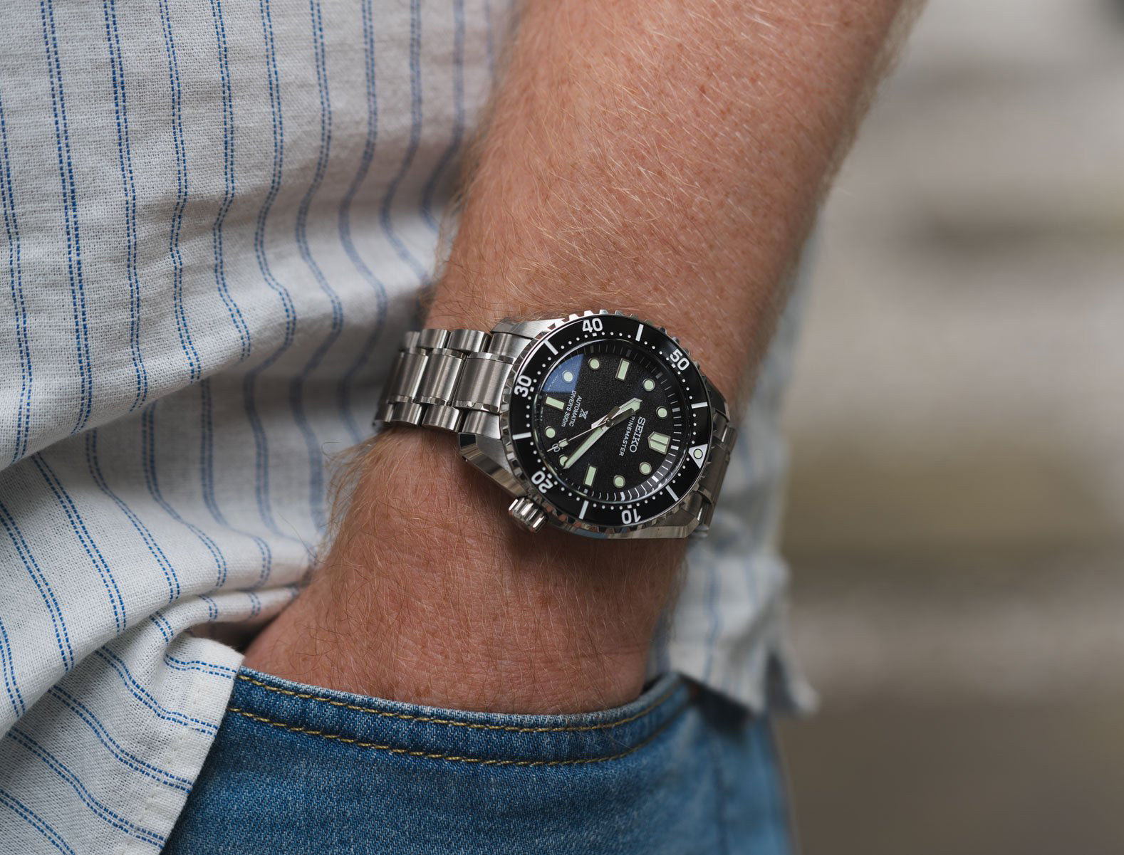 Seiko Prospex 1968 Marinemaster Heritage High Contrast Black Stainless Steel Watch SLA079J1