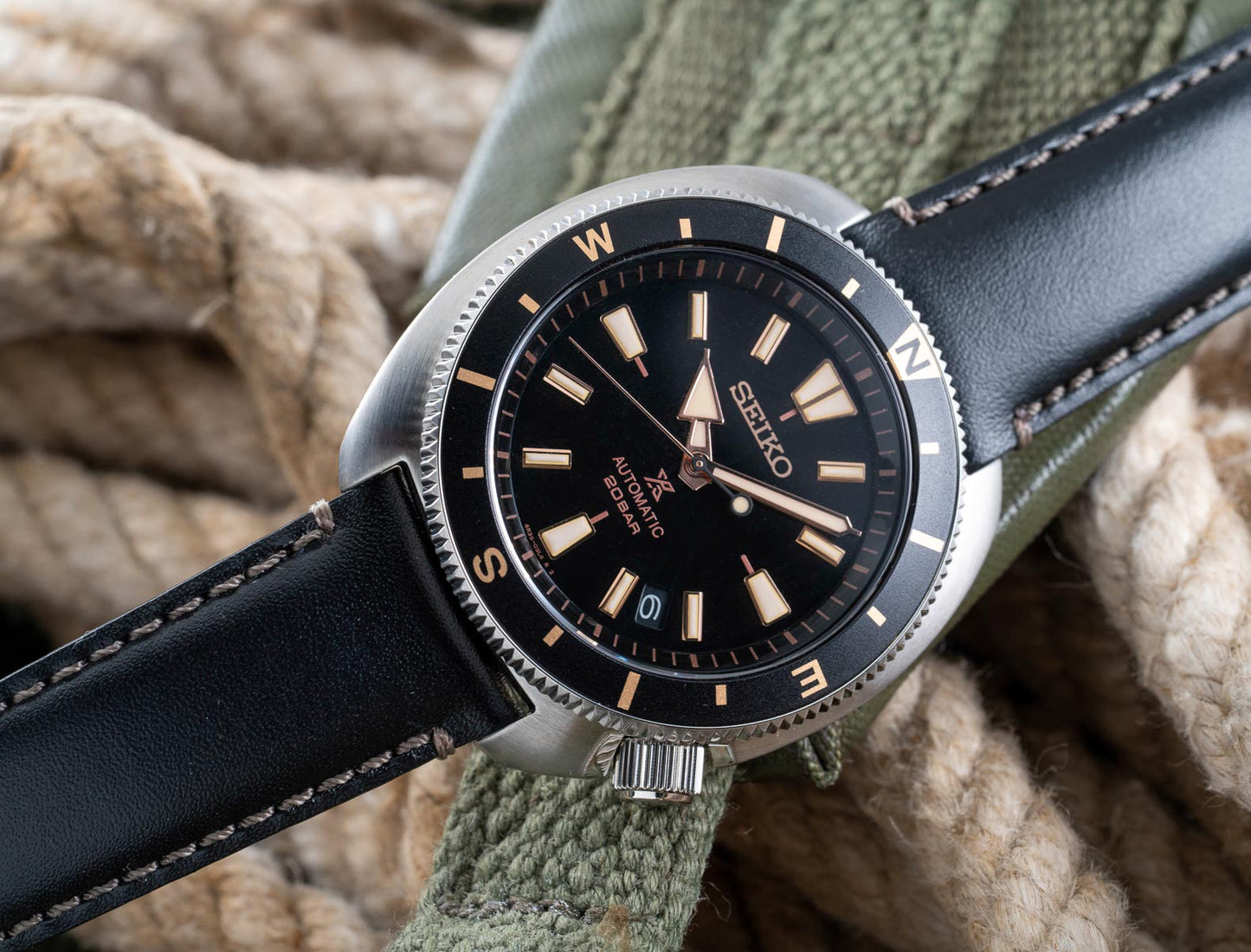 Seiko Prospex Turtle Black Land Tortoise 200M Leather Strap Watch SRPG17K1