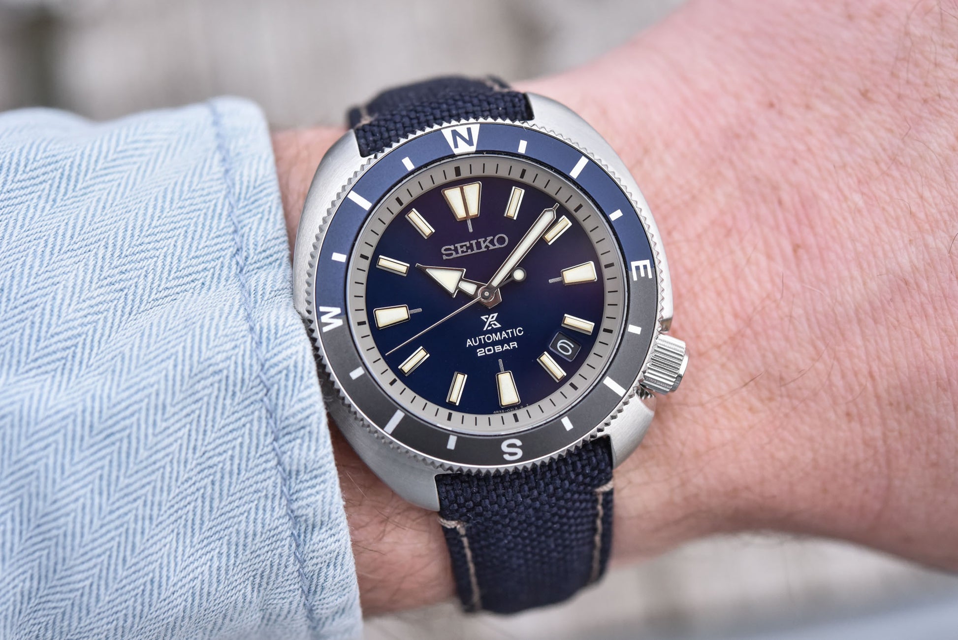 Seiko Prospex Turtle Blue Land Tortoise 200M Polyester Strap Watch SRPG15K1