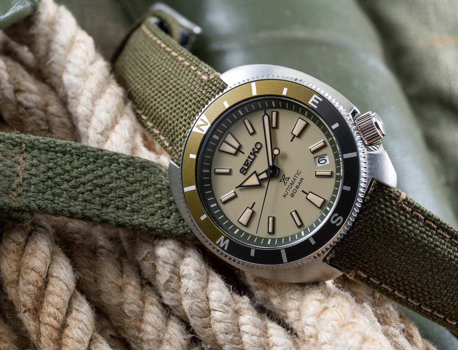 Seiko Prospex Turtle Green Land Tortoise 200M Polyester Strap Watch SRPG13K1